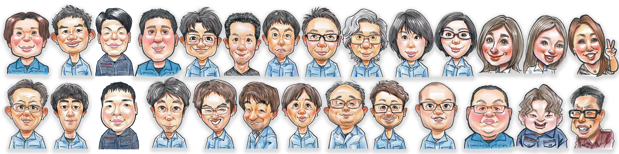 役員・管理職 吉井 俊治 宇加江 建一 溝嶋 大介 宗山 冬弥 品管業務 平岩 佐竹 浦山 山下 宮城 飯田 岡田 籾山 システム設計 吉川 中西 則定 中根 小島 北井 福永 中村 長坂 西尾 大窪 総務部